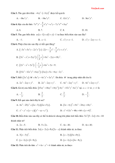 Câu 3. Thu gọn đơn thức xy xy2 2 4 3 được kết quả là A. 2 3 36 x y . B. 3 4 36 x y . C. 2 3 12x y . D. 3 4 36x y . 2