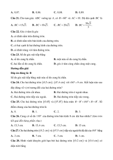 Câu 26. Cung có số đo 110 của đường tròn bán kính 8 cm dài bao nhiêu? (làm tròn