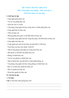 Đề cương ôn tập Cuối kì 2 Công nghệ 12 Lâm nghiệp, thủy sản Kết nối tri thức