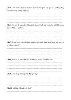 + Mô hình điện mặt trời. II. Câu hỏi ôn tập 1. Tự luận.