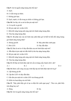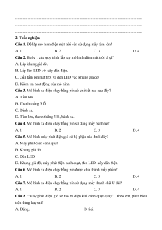 Câu 1. Để lắp mô hình điện mặt trời cần sử dụng mấy tấm lớn? A. 1 B. 2 C. 3 D. 4