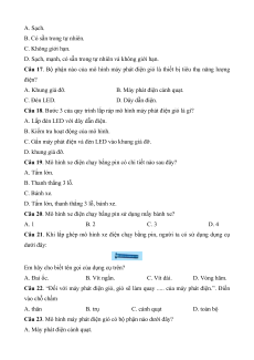 Câu 15. “Máy phát điện gió sẽ tạo ra điện khi cánh quạt quay”. Theo em, phát biểu trên đúng hay sai? A. Đúng. B. Sai.