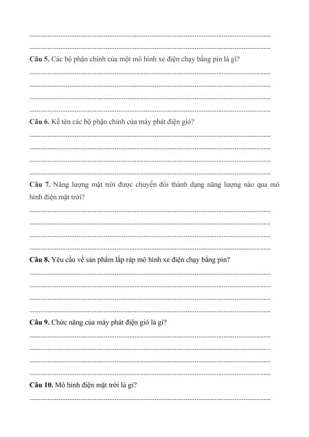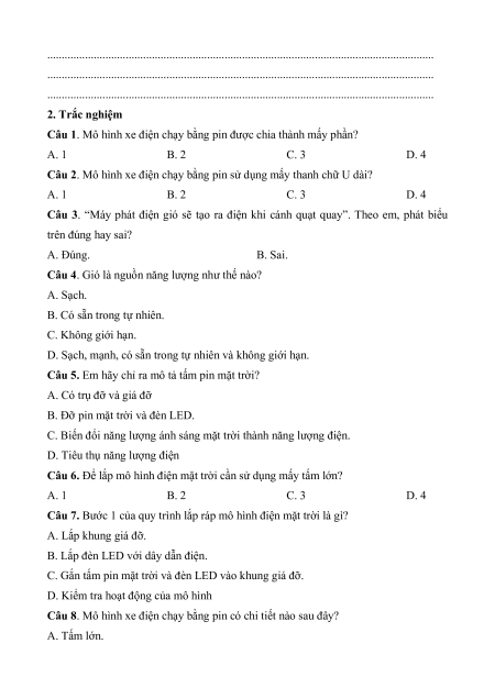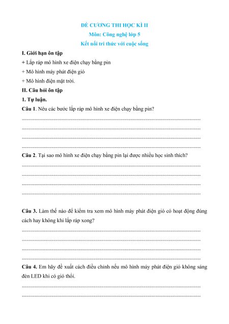 + Mô hình điện mặt trời. II. Câu hỏi ôn tập 1. Tự luận.