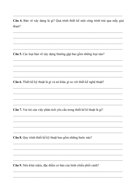 - Một số nghề nghiệp liên quan đến thiết kế kĩ thuật. II. Câu hỏi ôn tập 1. Tự luận.