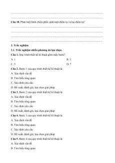 Câu 13. Hoạt động thiết kế có bước nào sau đây? A. Xác định vấn đề