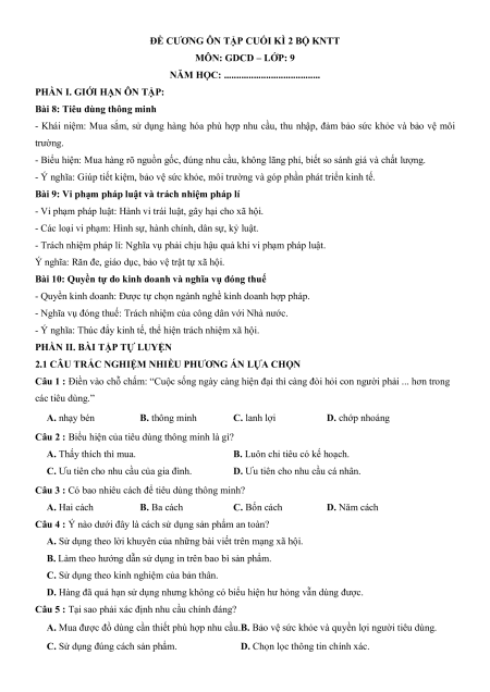 ĐỀ CƯƠNG ÔN TẬP CUỐI KÌ 2 BỘ KNTT MÔN: GDCD – LỚP: 9