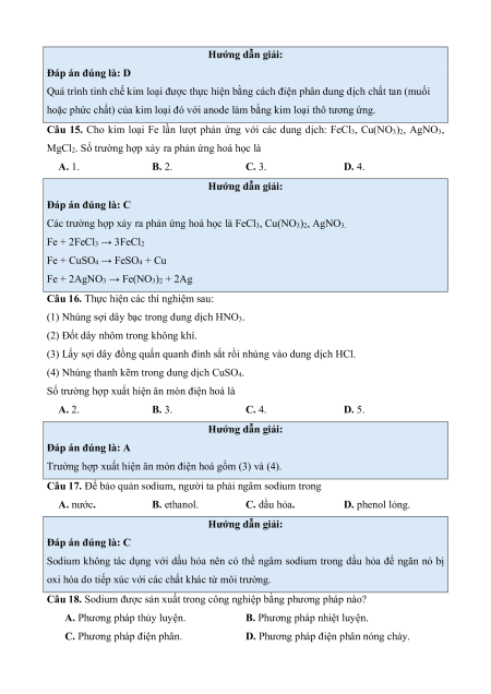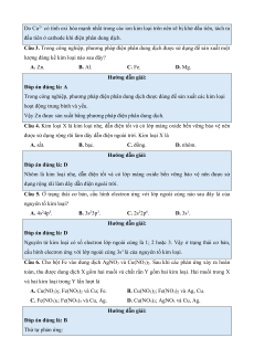 Câu 1. Kim loại nào sau đây là chất lỏng ở điều kiện thường? A. Na. B. Cs. C. Al. D. Hg. Hướng dẫn giải: Đáp án đúng là: D