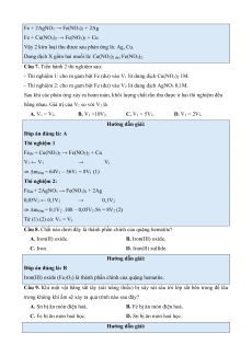 D. Cu(NO3)2; AgNO3 và Cu, Ag. Hướng dẫn giải: Đáp án đúng là: B Thứ tự phản ứng: Fe + 2AgNO3 → Fe(NO3)2 + 2Ag