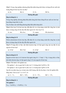 Câu 3. Trong công nghiệp, phương pháp điện phân dung dịch được sử dụng để sản xuất một
