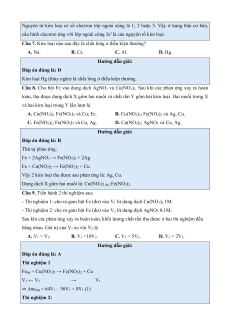 D. Cu(NO3)2; AgNO3 và Cu, Ag. Hướng dẫn giải: Đáp án đúng là: B Thứ tự phản ứng: Fe + 2AgNO3 → Fe(NO3)2 + 2Ag
