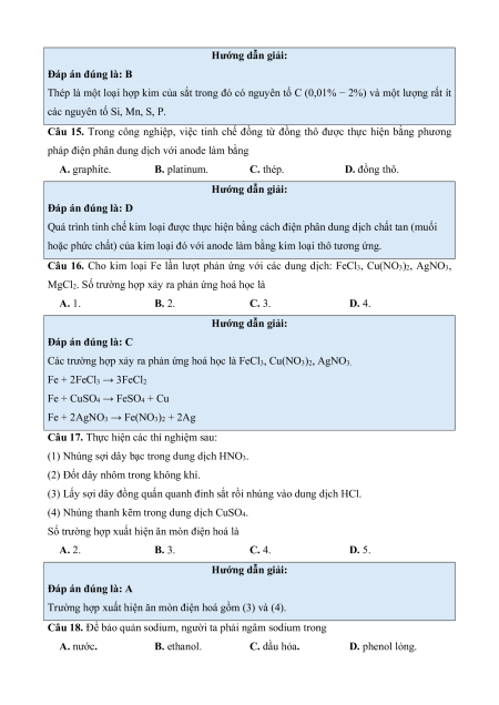 Câu 13. Để các hợp kim: Fe – Cu; Fe – C; Zn – Fe; Mg – Fe lâu ngày trong không khí ẩm.