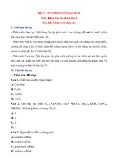 Đề cương ôn tập Cuối kì 2 Khoa học tự nhiên 8 Chân trời sáng tạo Cấu trúc mới