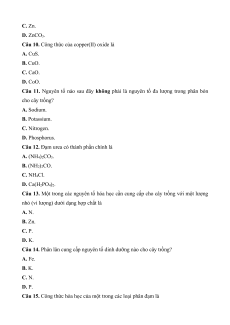 Câu 13. Một trong các nguyên tố hóa học cần cung cấp cho cây trồng với một lượng