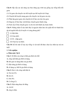 Câu 10: Kể tên một số loại cây trồng và vật nuôi đã được chọn lọc nhân tạo mà em biết? 2. Trắc nghiệm a. Phân môn Vật lí