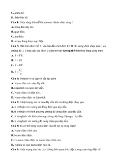 Câu 9: Hiện tượng nào sau đây không liên quan đến hiện tượng cảm ứng điện từ?