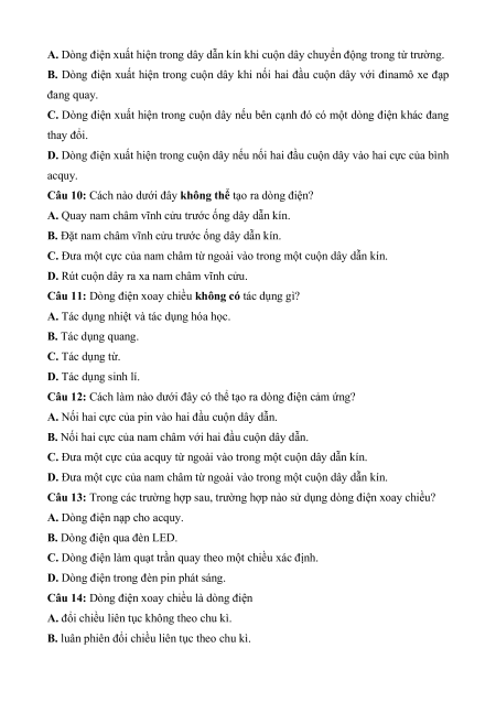 Câu 8: Ta có thể dùng nam châm nào để tạo ra dòng điện?
