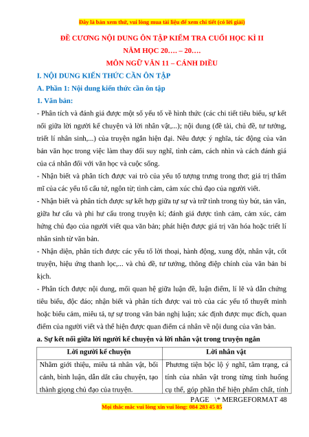 Đề cương ôn tập cuối kì 2 Ngữ văn 11 Cánh diều