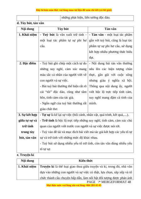 d. Tùy bút, tản văn Nội dung Tùy bút Tản văn