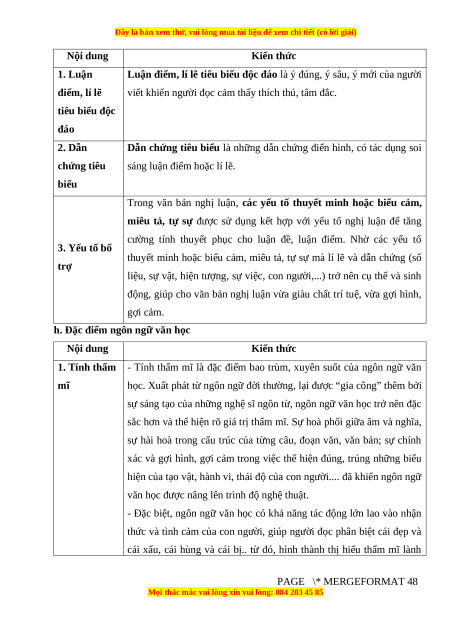 g. Luận đề, luận điểm, lí lẽ, dẫn chứng tiêu biểu, độc đáo PAGE \* MERGEFORMAT 48