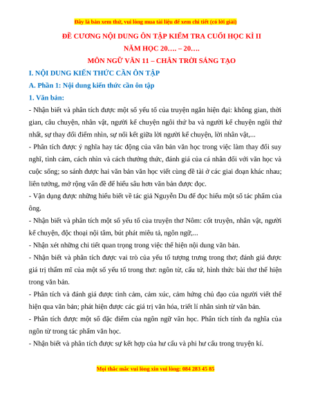 Đề cương ôn tập cuối kì 2 Ngữ văn 11 Chân trời sáng tạo