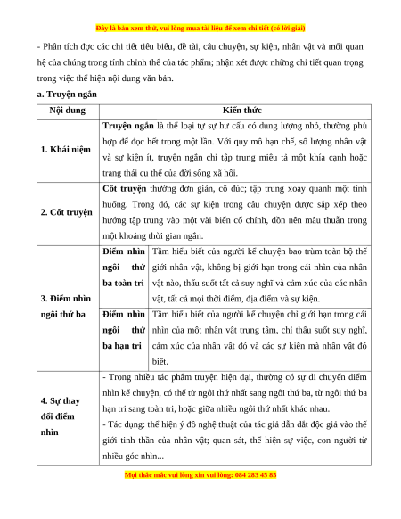 trong việc thể hiện nội dung văn bản. a. Truyện ngắn Nội dung Kiến thức