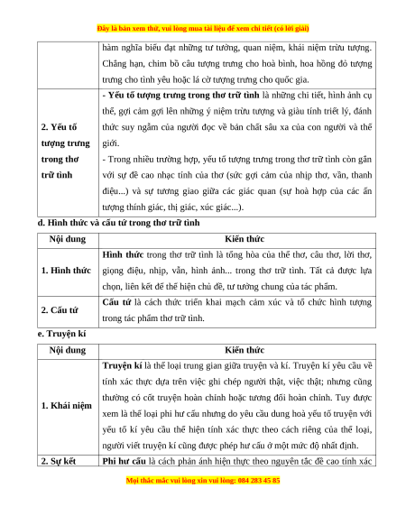 d. Hình thức và cấu tứ trong thơ trữ tình Nội dung Kiến thức