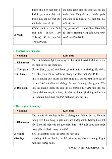 e. Thơ trữ tình hiện đại Nội dung Kiến thức