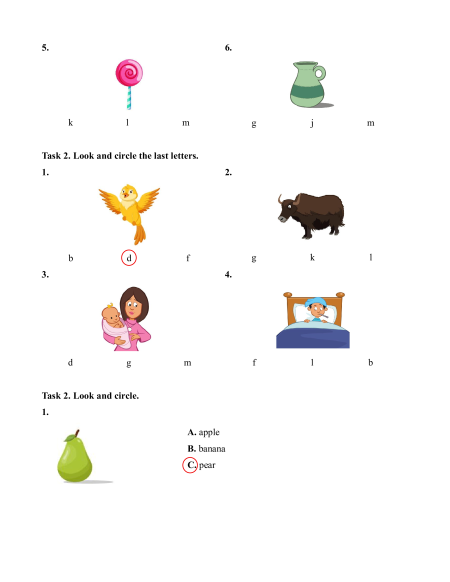 Task 1. Look and circle the first letters. 1. 2. a b c d e f 3. 4. f g h i j k
