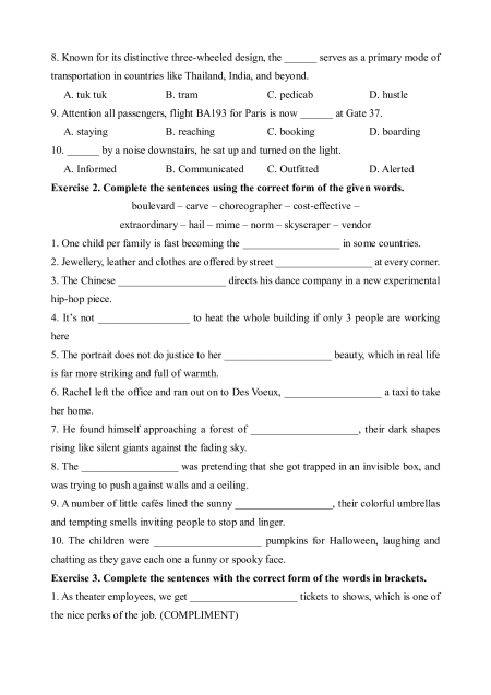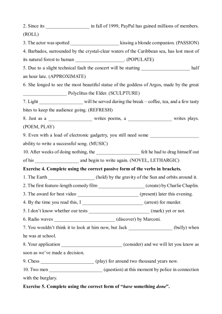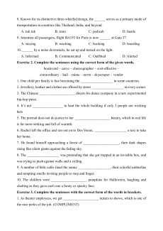 Exercise 2. Complete the sentences using the correct form of the given words.