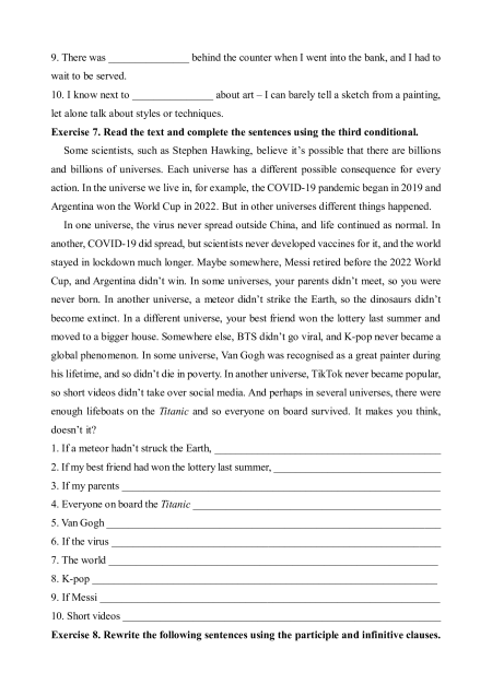 - have something done - Infinite pronouns - Third conditional