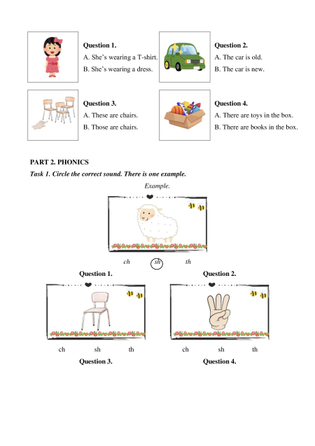 Task 1. Circle the correct sound. There is one example. Example. ch sh th Question 1. Question 2. ch sh th ch sh th Question 3. Question 4.
