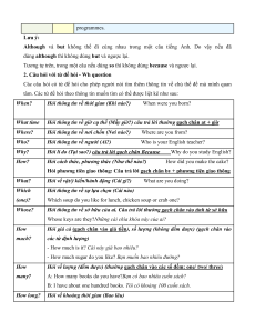 tâm. Các từ để hỏi theo thông tin muốn tìm có thể được liệt kê như sau: When?