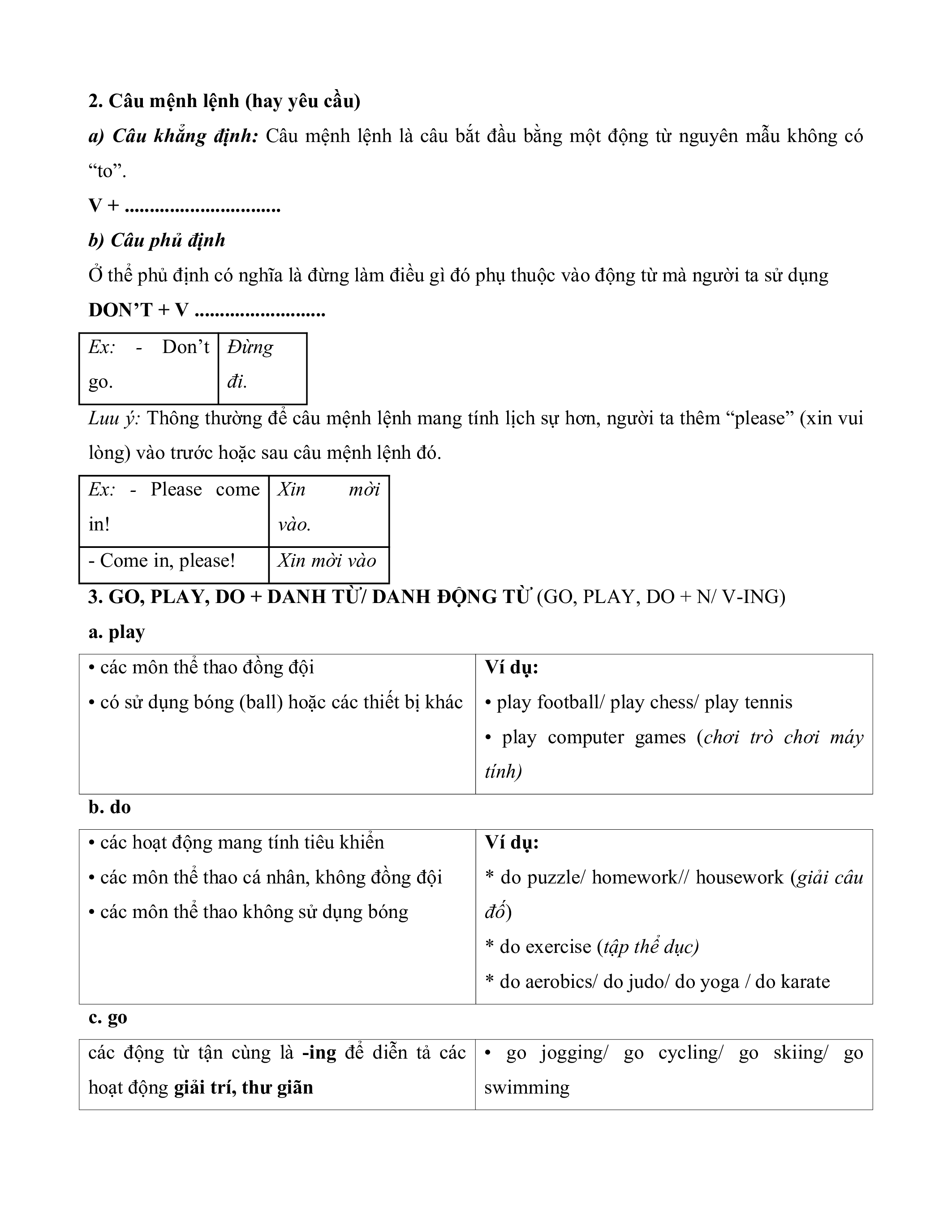 3. GO, PLAY, DO + DANH TỪ/ DANH ĐỘNG TỪ (GO, PLAY, DO + N/ V-ING) a. play