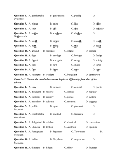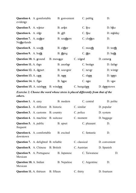 Exercise 2. Choose the word whose stress is placed differently from that of the others. Question 1. A. easy B. modern C. central D. polite