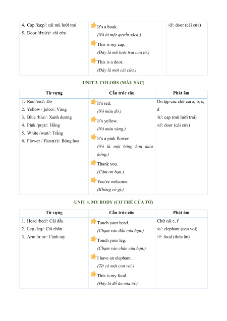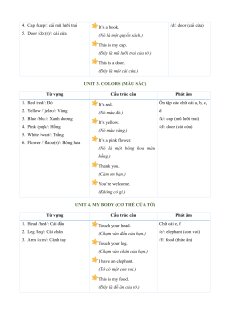 UNIT 3. COLORS (MÀU SẮC) Từ vựng Cấu trúc câu Phát âm 1. Red /red/: Đỏ It’s red.