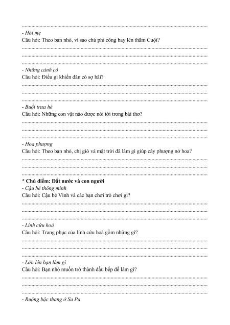 - Các em hãy luyện đọc các bài tập đọc và học thuộc lòng các bài thơ từ chủ điểm 5 đến chủ điểm 8.