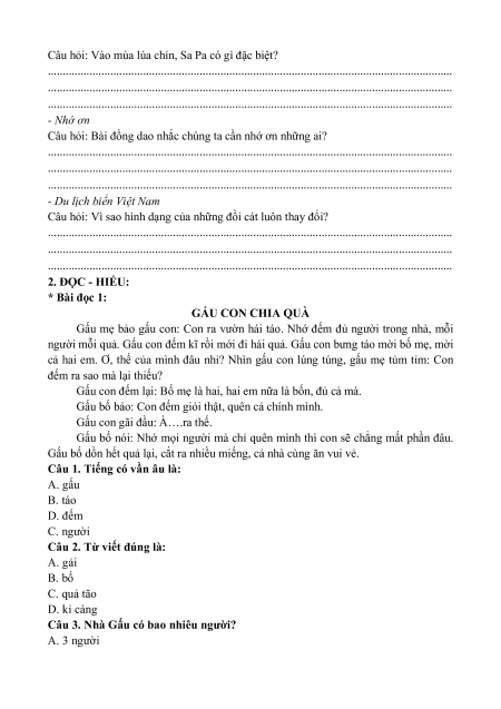 . . . . . . . . . . . . . . . . . . . . . . . . . . . . . . . . . . . . . . . . . . . . . . . . . . . . . . . . . . . . . . . . . . . . 2. ĐỌC - HIỂU: * Bài đọc 1: GẤU CON CHIA QUÀ
