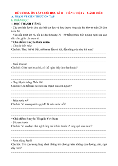 ĐỀ CƯƠNG ÔN TẬP CUỐI HỌC KÌ II – TIẾNG VIỆT 2 – CÁNH DIỀU