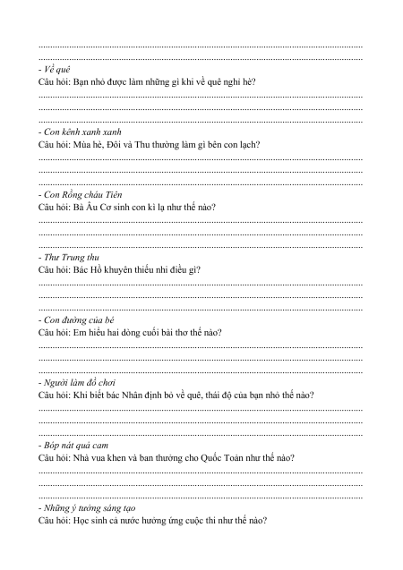 Câu hỏi: Bạn nhỏ được làm những gì khi về quê nghỉ hè?