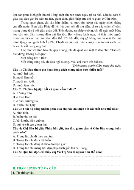 A. PHẠM VI KIẾN THỨC ÔN TẬP I. PHẦN ĐỌC