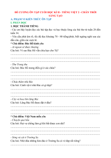 ĐỀ CƯƠNG ÔN TẬP CUỐI HỌC KÌ II - TIẾNG VIỆT 2 - CHÂN TRỜI SÁNG TẠO