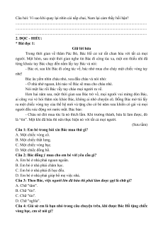 Câu 1: Em bé trong bài xin Bác mua thứ gì? A. Một chiếc vòng cổ. B. Một chiếc thắt lưng. C. Một chiếc vòng bạc. D. Một chiếc đồng hồ.