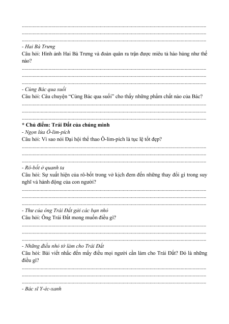 * Chủ điểm: Trái Đất của chúng mình