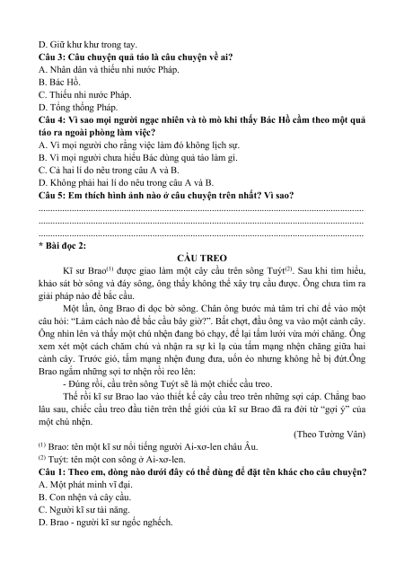. . . . . . . . . . . . . . . . . . . . . . . . . . . . . . . . . . . . . . . . . . . . . . . . . . . . . . . . . . . . . . . . . . . . . * Bài đọc 2: CẦU TREO
