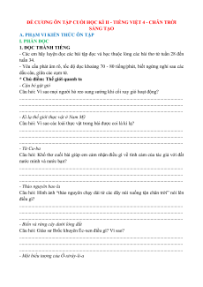 ĐỀ CƯƠNG ÔN TẬP CUỐI HỌC KÌ II - TIẾNG VIỆT 4 - CHÂN TRỜI SÁNG TẠO
