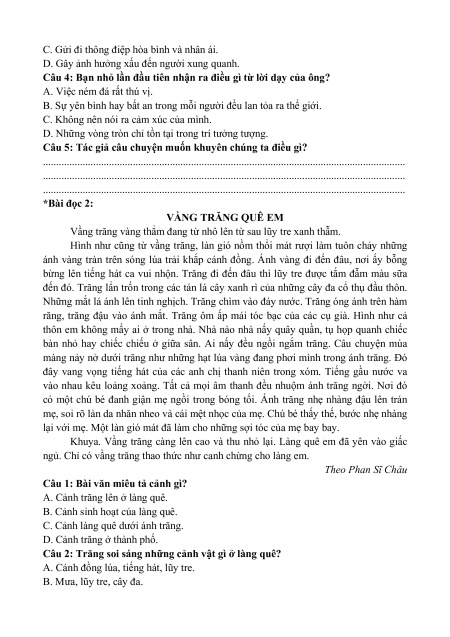. . . . . . . . . . . . . . . . . . . . . . . . . . . . . . . . . . . . . . . . . . . . . . . . . . . . . . . . . . . . . . . . . . . . . *Bài đọc 2: VẦNG TRĂNG QUÊ EM