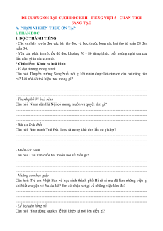 ĐỀ CƯƠNG ÔN TẬP CUỐI HỌC KÌ II - TIẾNG VIỆT 5 - CHÂN TRỜI SÁNG TẠO