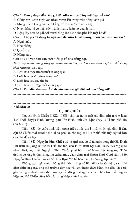 . . . . . . . . . . . . . . . . . . . . . . . . . . . . . . . . . . . . . . . . . . . . . . . . . . . . . . . . . . . . . . . . . . . . . 2. ĐỌC - HIỂU: * Bài đọc 1: HOA ĐỒNG NỘI