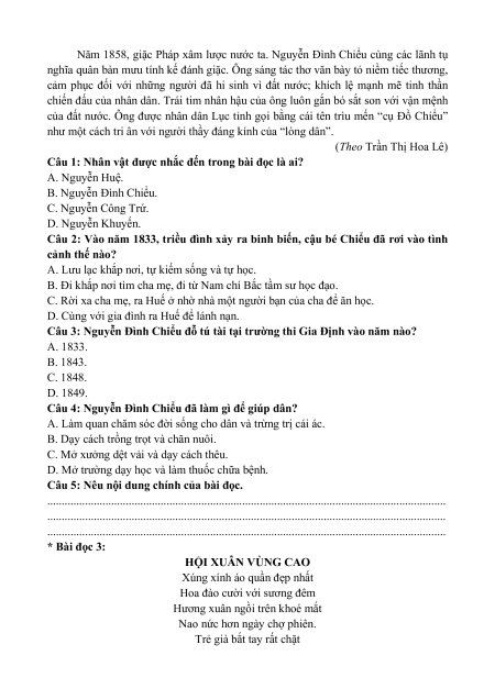 . . . . . . . . . . . . . . . . . . . . . . . . . . . . . . . . . . . . . . . . . . . . . . . . . . . . . . . . . . . . . . . . . . . . . * Bài đọc 2: CỤ ĐỒ CHIỂU