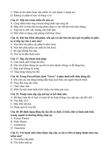 Câu 20. Để định dạng đồng bộ cho tất cả slide về kiểu chữ và hình ảnh biểu